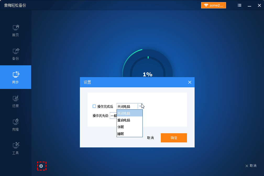 提示:同步运行时,您可以单击左下角的图标设置同步完成后关闭电脑/重启电脑/休眠/睡眠。